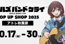 The Girls Band Cry POP UP SHOP returns to Atre Akihabara from Oct 17 (Fri) to Oct 30 (Thu), 2025. Admission is free, and...