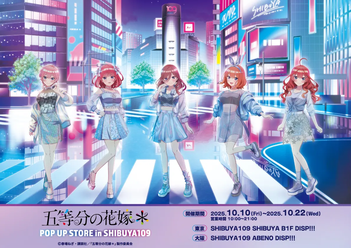 The Nakano sisters are taking over SHIBUYA109 this fall! The TV special anime The Quintessential Quintuplets∗ will host a limited-time pop-up store in both Tokyo and Osaka from October 10–22, 2025. Get ready to see brand-new Y3K fashion visuals and exclusive merch created just for this event!
