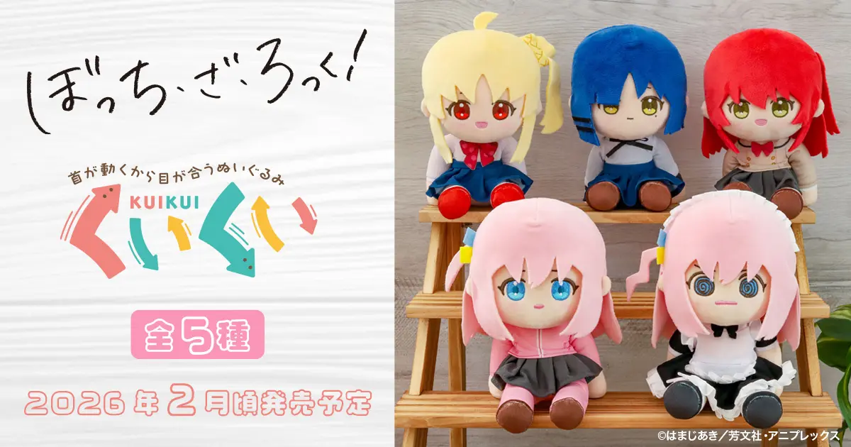 A tiny head tilt, a lot of heart. Movic’s new “Kui Kui” plush line brings the Kessoku Band from Bocchi the Rock! right to your desk—with a gentle sit-and-tilt pose that looks up at you for maximum comfort. Two Bocchi variants lead a five-character lineup, sized just right at about 18 cm and ready for cute photo ops at home or on the go.