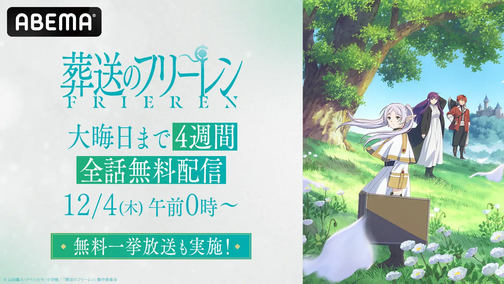 Frieren: Beyond Journey’s End is heading back to ABEMA right as hype builds for season 2 in January 2026. The fantasy hit, based on the manga by Kanehito Yamada and Tsukasa Abe, follows immortal mage Frieren as she wanders the world centuries after the hero party’s victory. To help fans catch up, ABEMA will make all 28 episodes of season 1 free for a limited time.
